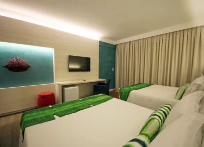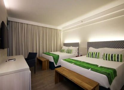 Suíte composta por 02 camas de casal Queen Size, com vista para a Cidade (acomoda até 4 pessoas).